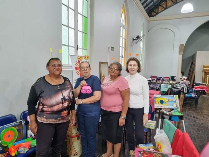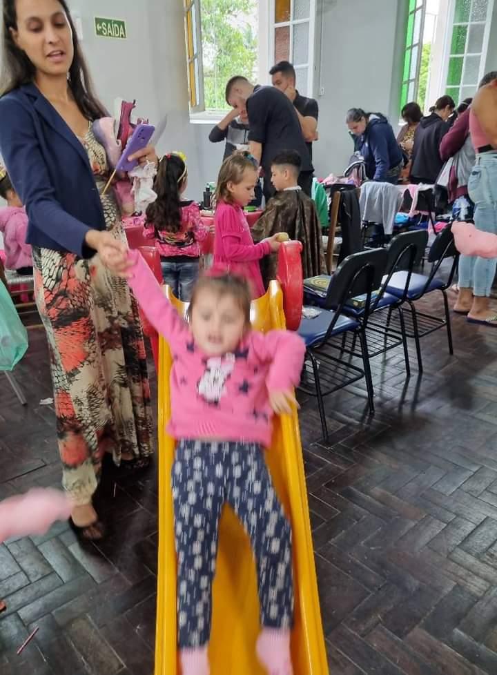 Estância Velha – Na tarde de terça-feira, dia 17, os voluntários e parceiros da Cáritas Estância Velha promoveram uma tarde especial tanto para as famílias no Dia da Solidariedade como para a garotada na Festa das Crianças. A intenção era realizar um evento único na rua em frente a entidade, mas a chuva não permitiu, e as ações foram divididas em dois ambientes.
