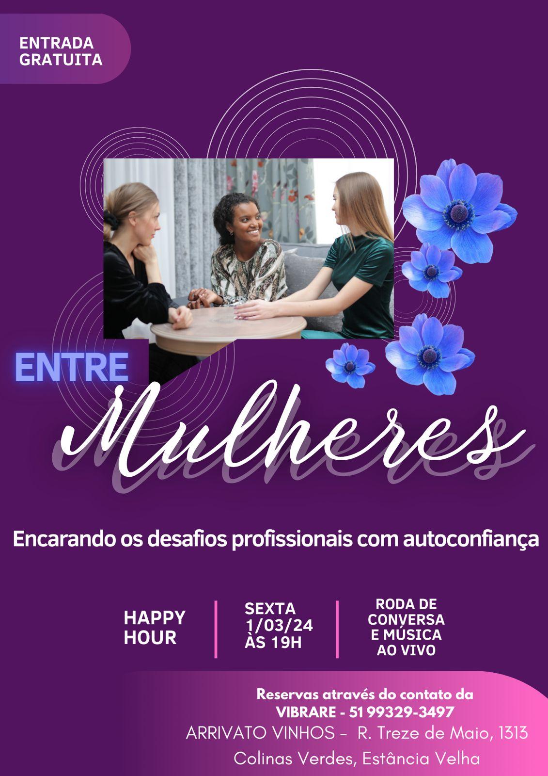 Abrindo a programação e comemorações alusivas ao Dia Internacional da Mulher, que acontece no dia 08 de março, a Arrivato Wine Bar e a Vibrare realizam nesta sexta-feira, 01 o happy hour Entre Mulheres. O tema do encontro será: Encarando os desafios profissionais com autoconfiança.