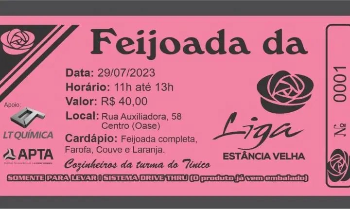 Estância Velha - A tradicional Feijoada da Liga está chegando, será neste sábado, dia 29 de julho. Os cartões ainda podem ser adquiridos com as voluntárias da Liga Feminina de Combate ao Câncer.