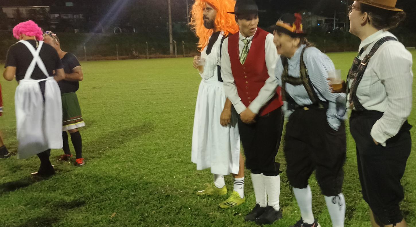 A tradicional partida de futebol é uma forma de divulgar o evento principal e de reunir amigos em uma atividade de integração e alegria.
