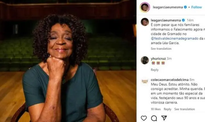 Morreu nesta terça-feira, dia 15, aos 90 anos, a atriz Léa Garcia. Ela estava no Festival de Gramado, onde seria homenageada - hoje à noite-, pelo conjunto da obra com o troféu Oscarito, juntamente com a atriz Laura Cardoso.