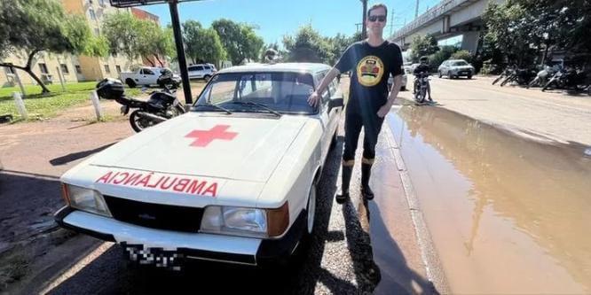 Entre os clássicos que estarão em exposição hoje à noite, a ambulância Caravan 1988 é destaque. O veículo foi usado pelo supervisor comercial Rafael do Anjos para o resgate de pessoas na enchente, no bairro Santo Afonso em Novo Hamburgo. “Meu carro tem sirene e é equipado com maca. Então, me desloquei até Novo Hamburgo e me coloquei a disposição para transportar feridos. Foi emocionante. A cada dia chegava em casa e agradecia por minha família estar em segurança”. Jamais esquecerei, foram cenas muito fortes, enfatiza Rafael. Integrante do Platinados Old, dos Anjos relata que auxiliou no deslocamento de aproximadamente 30 pessoas. Levando-as para a UPA – Unidades de Pronto Atendimento e outras vezes para o Hospital Municipal de NH.