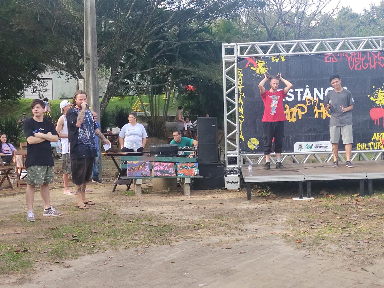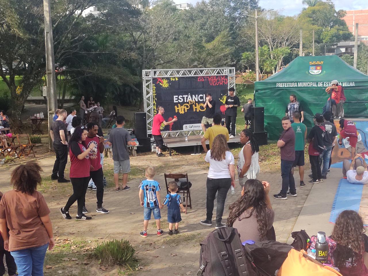 Estância Velha - Muita música, dança, batalhas de talentos musicais do gênero e a comunidade prestigiando, assim foi a tarde do domingo, dia 23, na pista de skate do bairro Floresta. A oitava edição do Estância em Hip Hop é um projeto desenvolvido pelo Hip Hop Solidário, coordenador por Alisson Martins e demais integrantes e parceiros
