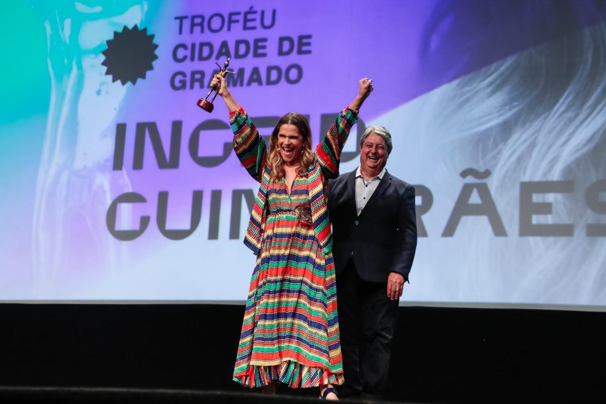 Cidade de Gramado - A atriz e comediante Ingrid Guimarães recebeu o Troféu Cidade de Gramado. Ingrid ressaltou a importância da premiação e falou sobre a falta de prestígio da comédia em festivais e prêmios do segmento. Ela também reverenciou a presença de Laura Cardoso no evento, que acompanhou a homenagem e enfatizou a importância da presença das mulheres na indústria cinematográfica. Ingrid aproveitou a ocasião e fez um apelo para que o projeto de lei 3.696/2023 que está em tramitação em Brasília e prevê cota de tela para produções audiovisuais brasileiras em cinemas e serviços de TV assinatura seja aprovado.