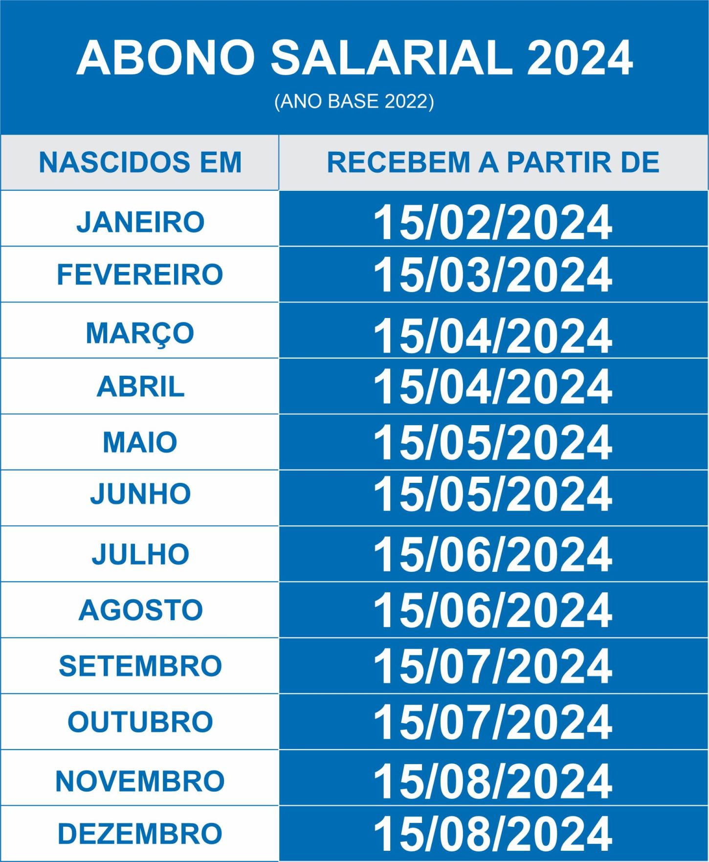 Já está liberado o calendário 2024 de pagamentos do abono salarial. O benefício de até um salário mínimo que é pago aos trabalhadores vinculados ao Programa de Integração Social (PIS) e ao Programa de Formação do Patrimônio do Servidor Público (Pasep), começou no dia 15 de fevereiro. Para verificar se têm direito ao abono e valores é possível conferir no aplicativo da Carteira Digital ou no portal Gov.br.